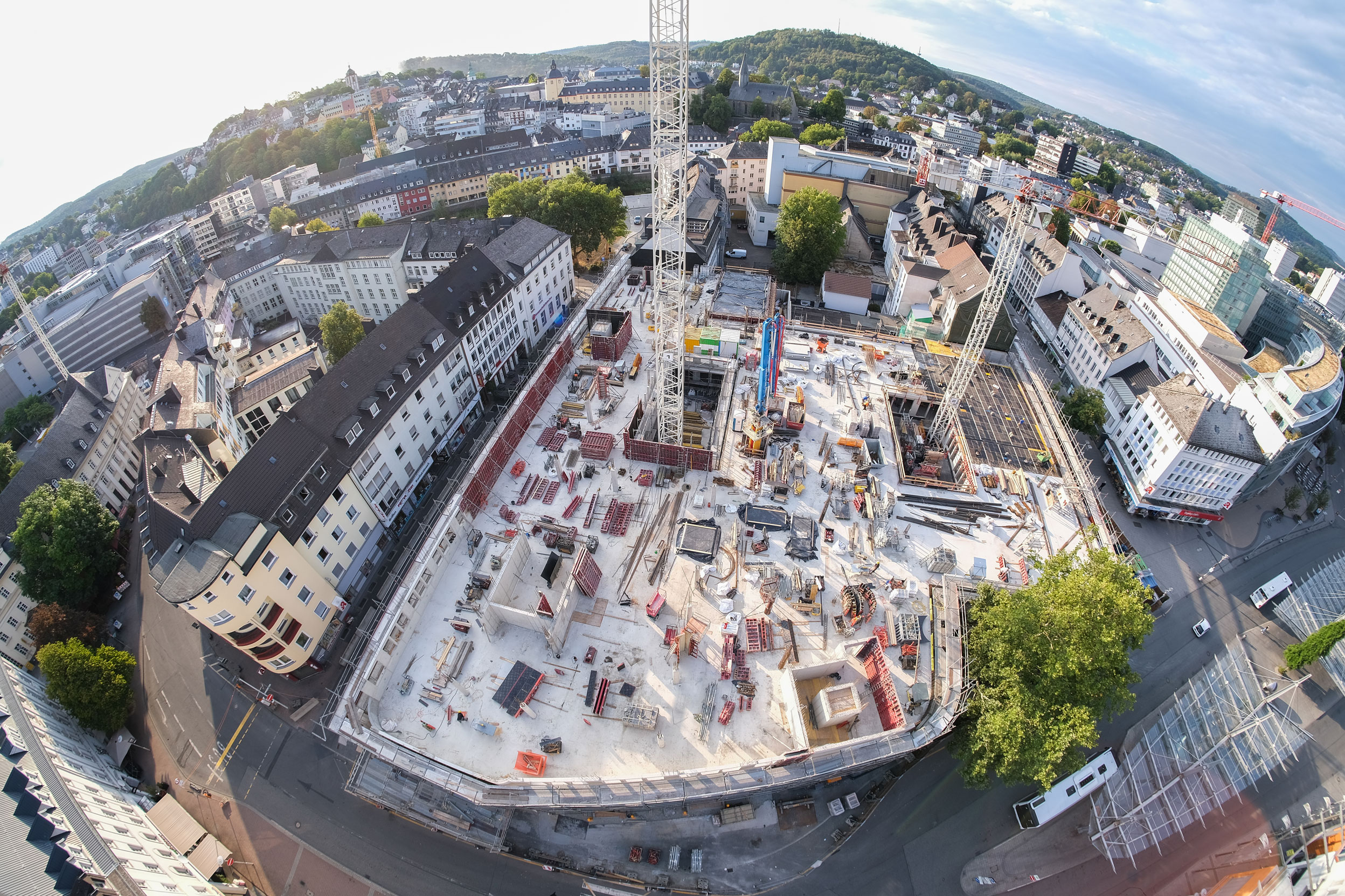 Das Johann-Moritz-Quartier in Siegen ist eines der größten Städtebauprojekte der letzten Jahre in der Innenstadt. Auf einer Fläche von 4.000 m² entstand direkt gegenüber dem Hauptbahnhof ein moderner Gebäudekomplex mit gemischter Nutzung, der das Viertel deutlich aufwertet. Hundhausen war in der Arge Hundhausen/Quast/Runkel maßgeblich an der Planung, am Hoch- und Ingenieurbau sowie an der Gesamtprojektsteuerung beteiligt und intensiv in den Rohbau eingebunden.