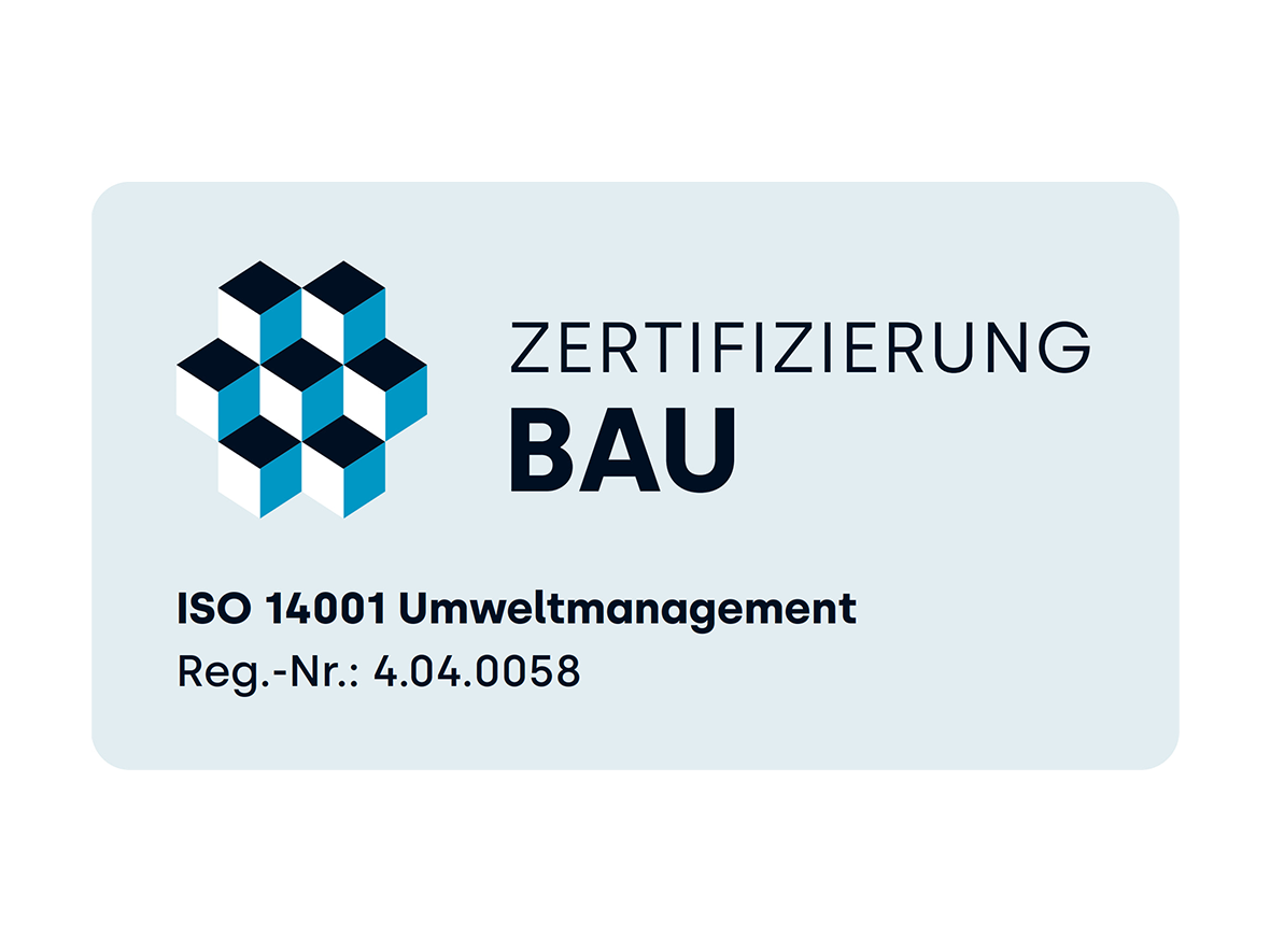 Darüber hinaus sind wir mit der Hundhausen-Bau Eisenach GmbH seit dem 29.09.2025 nach ISO 14001 für die Maßnahmen zum Umweltmanagement zertifiziert.