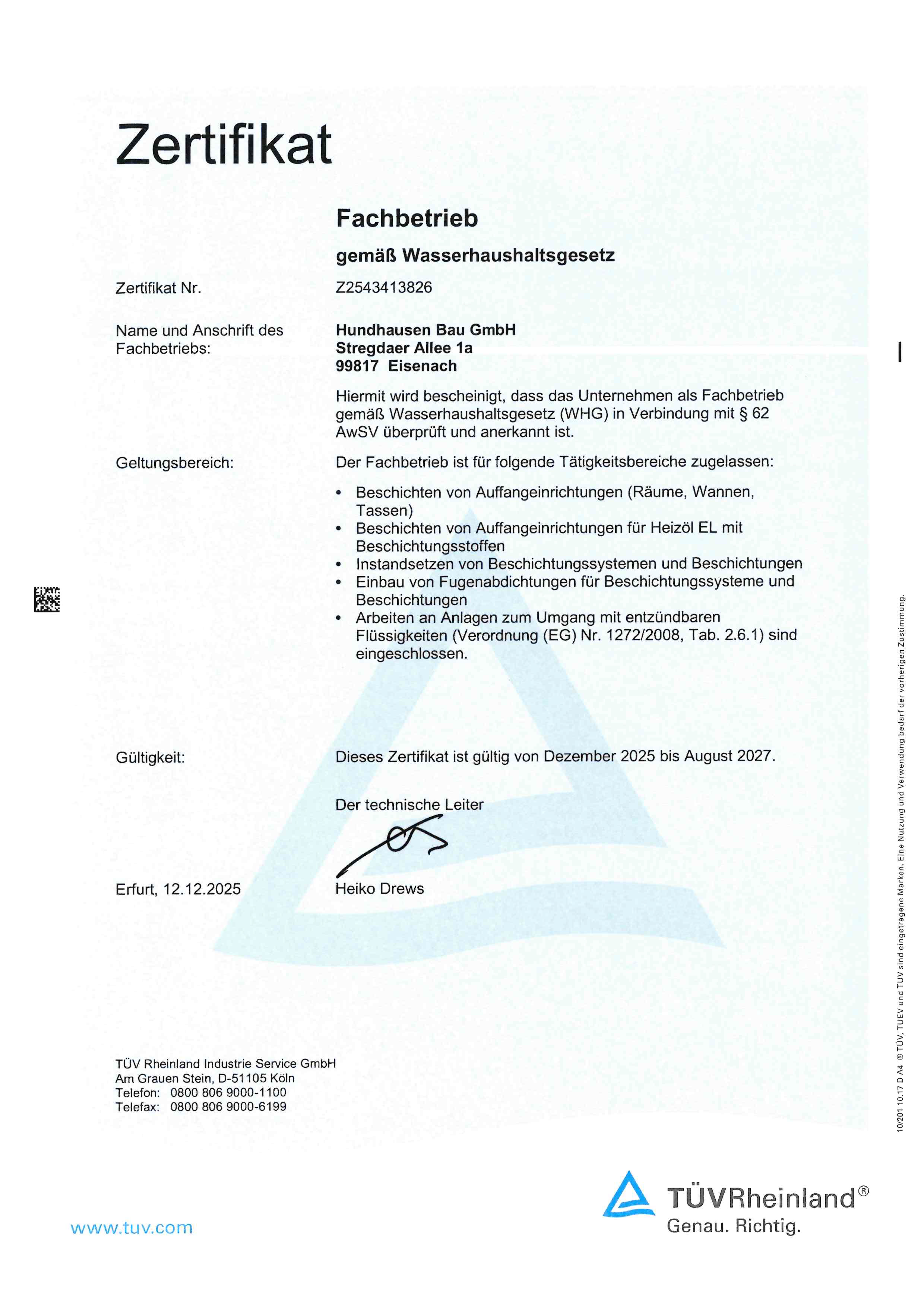 Zur Erreichung der Unternehmensziele und stetigen Verbesserung der gesamten Unternehmensprozesse hat Hundhausen eine Vielzahl von Auszeichnungen erhalten. Hierbei bilden die Aus- und Weiterbildung unserer Mitarbeiter das Fundament für unseren unternehmerischen Erfolg. So ist es Hundhausen auch in schwierigen Zeiten immer wieder gelungen, zuverlässig Wachstum und maximale Kundenzufriedenheit zu erzielen.