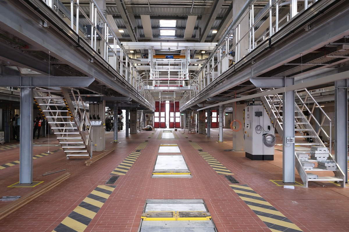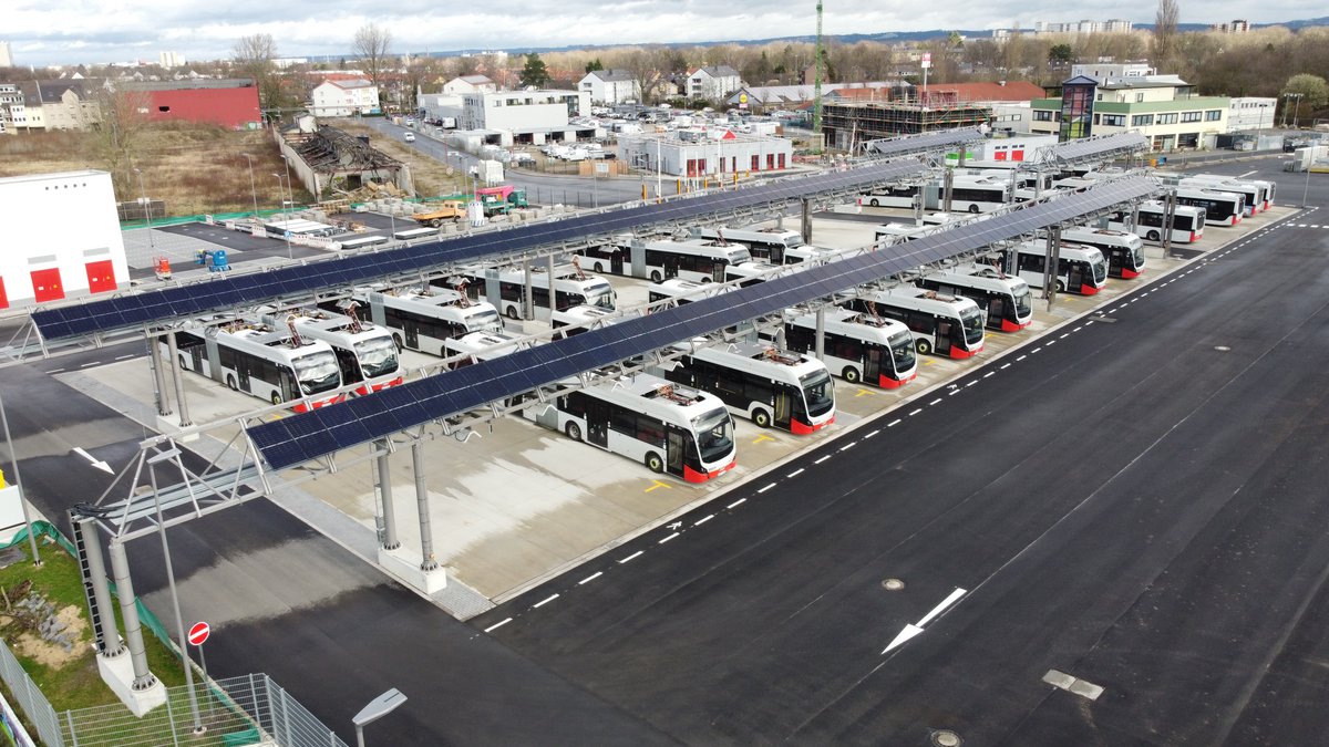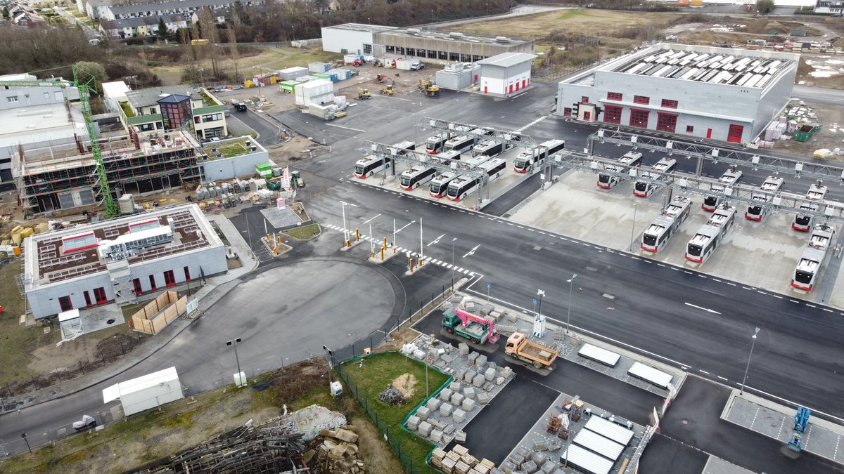 Für die Kölner-Verkehrs-Betriebe AG (kurz KVB) entsteht auf einem seit fast 20 Jahren ungenutzten Industriegelände mit einer Fläche von 63.000 m² der größte Elektrobusbetriebshof Deutschlands. Nach einer Rekordbauzeit von rund 2 Jahren wird der neue Busbetriebshof in Köln-Porz am 18.03.2024 in Betrieb gehen. Die Kölner-Verkehrs-Betriebe AG und die Baubeteiligten haben es geschafft, von der Planungsphase inklusive Genehmigung bis zur feierlichen Eröffnung nur knapp 4 Jahre zu benötigen - eine beachtliche Bauzeit für ein solch komplexes Bauvorhaben.
