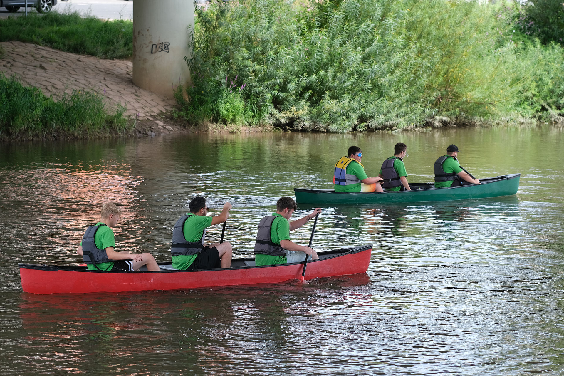 Der Workshop begann mit einer Vorstellungsrunde, gefolgt von einer interaktiven Rallye durch den Schlosspark von Rotenburg. Bei den ersten Teamaufgaben lernten sich die Nachwuchskräfte besser kennen und arbeiteten schnell erfolgreich als Gruppe zusammen. Alle Aufgaben wurden mit Bravour gemeistert. Nach der Mittagspause ging es auf eine 11 Kilometer lange Kanutour auf der Fulda. Obwohl die Gruppe am Ende etwas durchnässt war, überwog die Zufriedenheit über das gemeinsame Erlebnis. Der Abend klang gemütlich auf der Terrasse bei Sonnenuntergang aus.